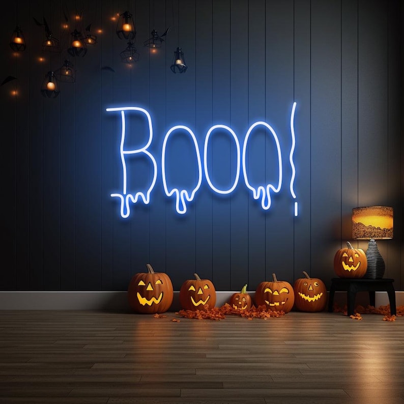 BOO LED Neon Sign from Neon.Outshine. Its a bold, bright, and full of festive fright, this sign is perfect for welcoming trick-or-treaters, setting the mood at your Halloween party, or simply lighting up your favorite seasonal corner.